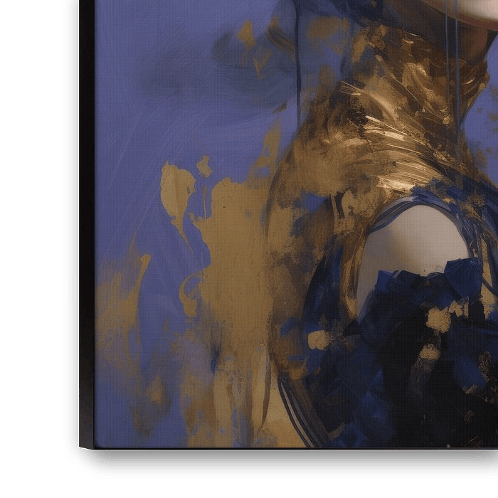 Modern and abstract portrait "Pretty in purple". With this work you get a special eye-catcher in your home, in completely purple and gold tones. Soft, bold and seductive, this work has it all!