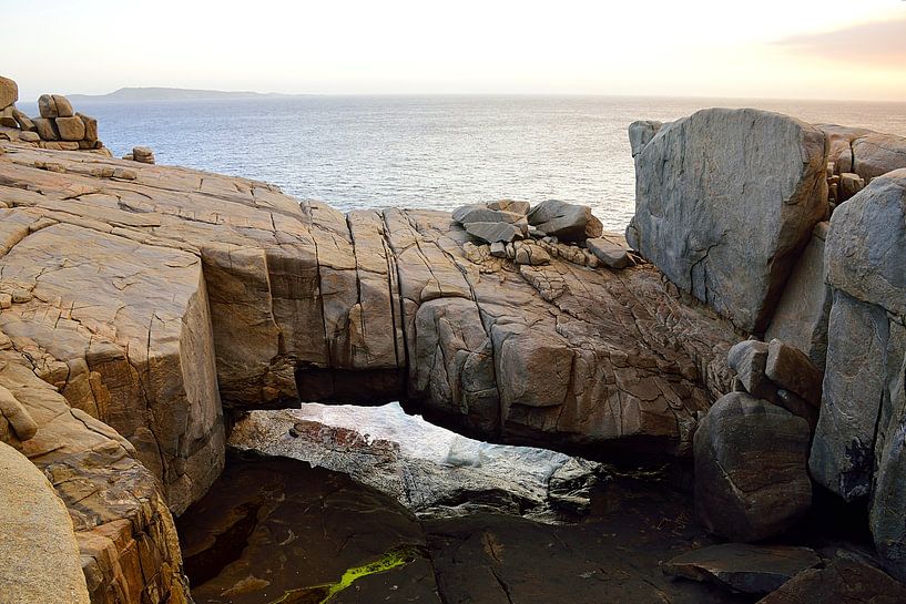 Admiring the pretty strong natural bridge in Torndirrup National Park near the town of Albany in Western Australia.