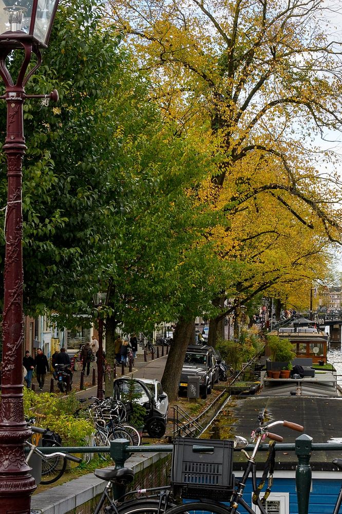 On the Prinsengracht in Amsterdam stands the famous Westerkerk. The autumn colours of the trees betray the fact that it is autumn.
