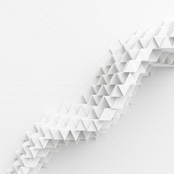 3D rendering/ray tracing of a surface made up of prisms and triangles that dynamically curve along a serpentine line. Stylishly elegant, understated white, minimalist and abstract.