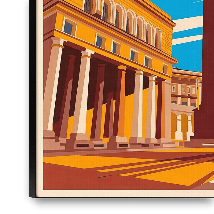 A bright blue sky provides a vivid contrast to the warm earthy tones of Pristina's buildings. The monumental obelisk rises majestically, surrounded by the clear lines of architectural masterpieces. This scenery is inviting and conveys the vibrant spirit of a city that harmoniously combines tradition and modernity. A true jewel in the…
