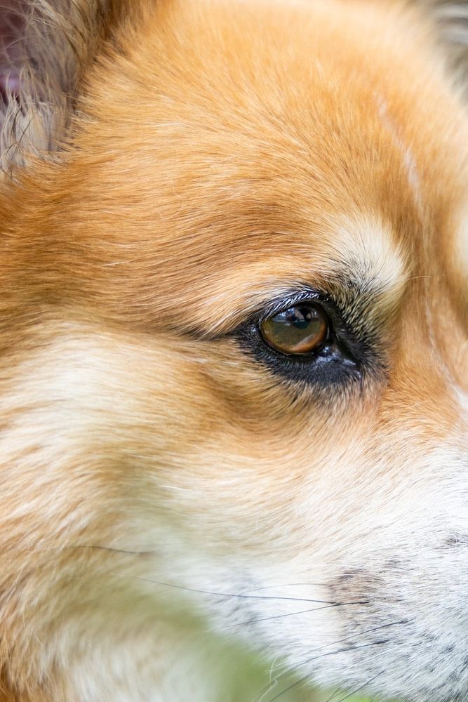 This beautiful picture shows the profile of a corgi gazing thoughtfully into the distance. The detail of the shot perfectly captures the dog's fine features and soft coat. Ideal for lovers of dogs and animal photography who appreciate the quiet elegance and intelligence of this breed. This image brings the gentle and loyal nature of a Corgi into any home.