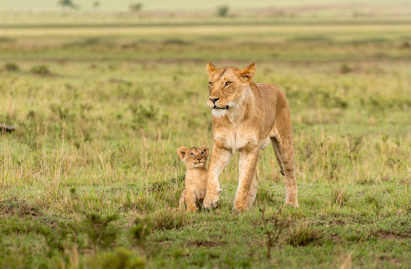 An amazing and gorgeous moment during one of my photo safaris! An early morning encounter with a beautiful adult lioness with a young cub in the open. How wonderful to meet them and see their interaction.