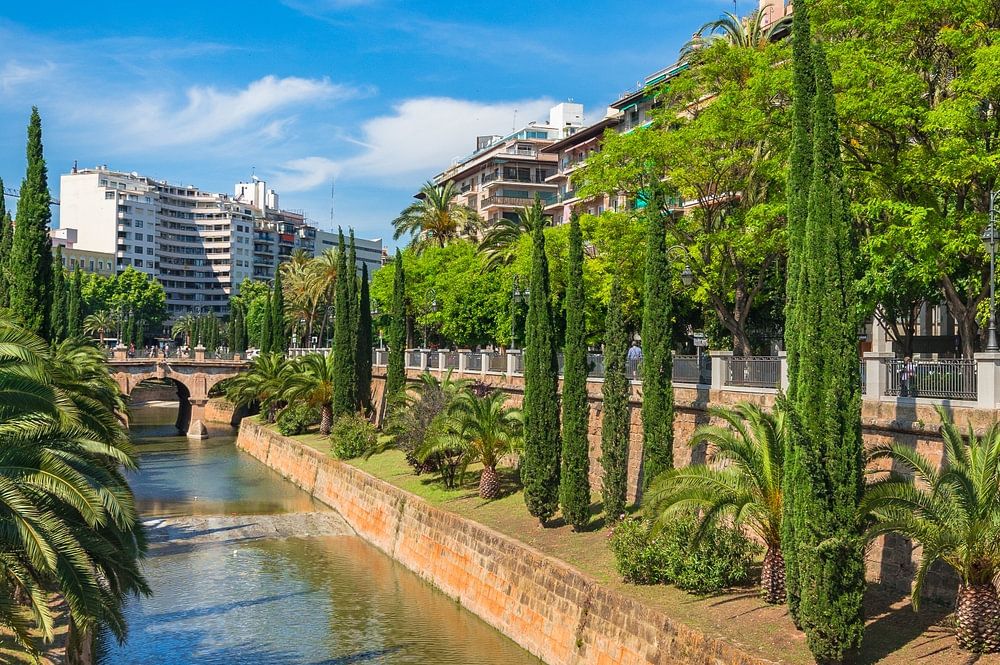 About "Public park wit water canal stream at city center of Palma de Majorca"