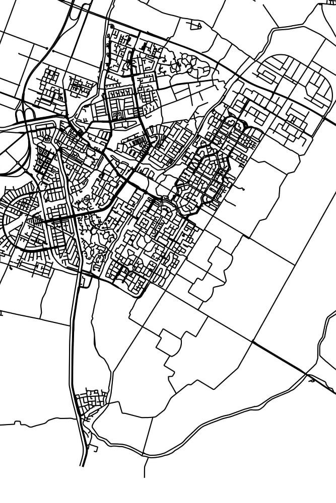 Black and white map, street map or street plan of Purmerend. Purmerend is located in the municipality of Purmerend, province of North Holland. The city map includes all public roads in Purmerend. Furthermore, the map features the coordinates of the center of Purmerend.
