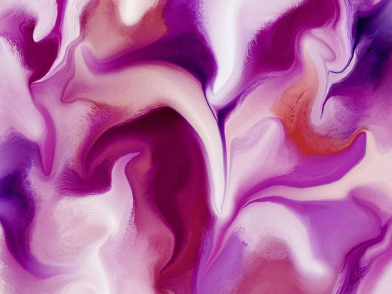 Abstract digital painting in shades of purple and magenta with flowing, swirling shapes. Soft colour gradients and subtle transitions give the work a vibrant, modern look.