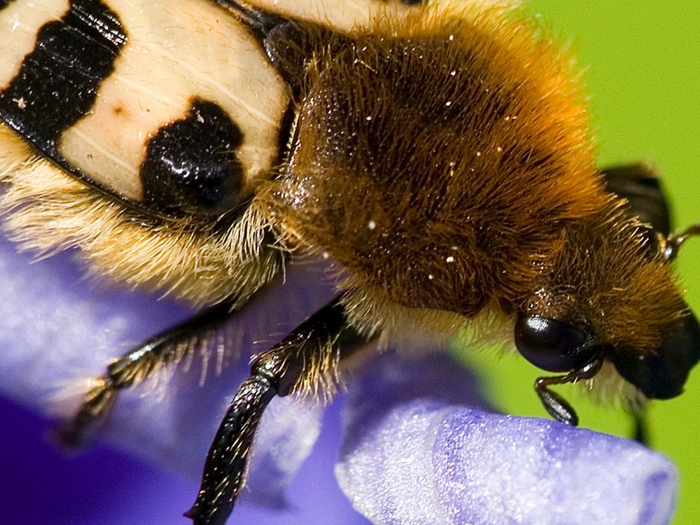 This brush beetle attaches itself to a petal of the Hibiscus AlthaeaChinese rose ...