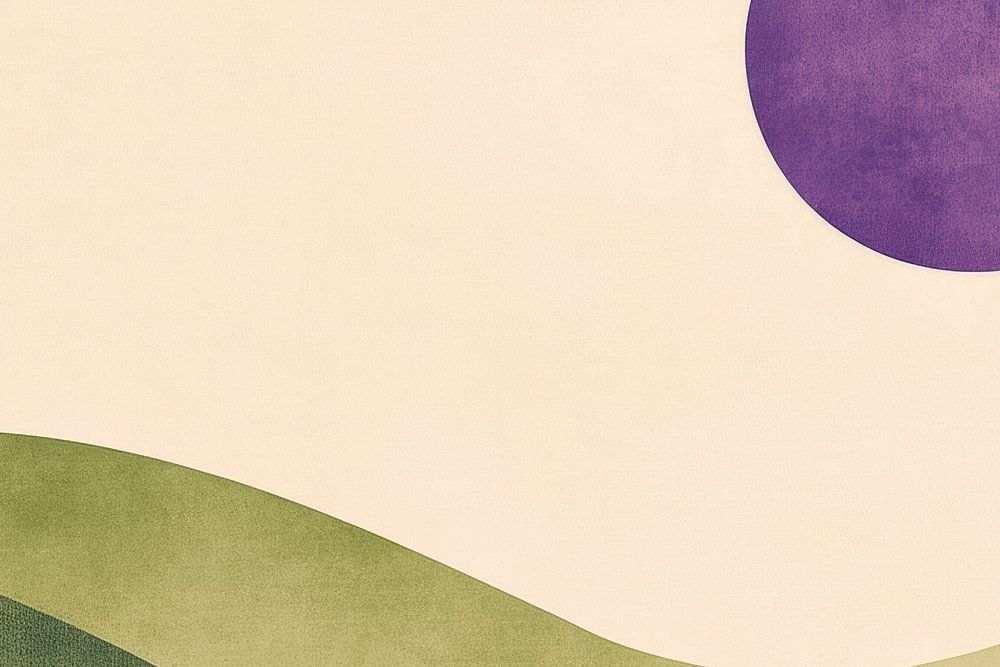 Gentle, curved hills meet a bold, luminous circle of sunlight in soft purple tones. This harmonious composition radiates calm and serenity and is perfect for a bedroom to create a relaxing atmosphere. The soft colours and shapes invite you to dream and relax.