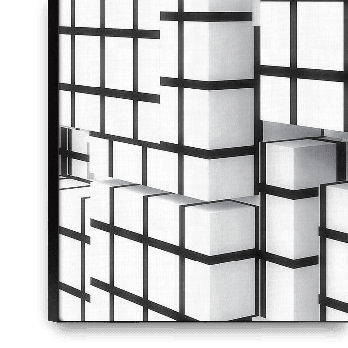 This abstract motif shows several different three-dimensional cubes that nested in each other unfold a perspective depth effect on the viewer. It is well suited as wall wallpaper or photo wallpaper to create more spatial depth for a room. Also as a mural, this image with its black and white contrasts and the 3D effect is an eye-catcher…