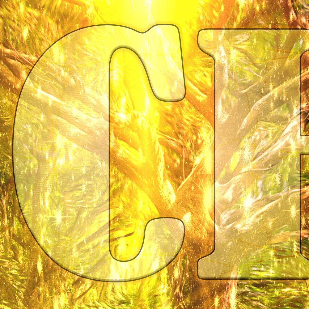Der Hintergrund des Bildes zeigt einen majestätischen, alten Baum, der die Weisheit und Beständigkeit des Lebens symbolisiert. Umgeben von anderen Bäumen, strahlt dieser Baum eine Aura von Stärke und Weisheit aus. Aus seiner mächtigen Krone strahlt eine strahlende Lichtkugel, die das gesamte Bild in goldenes Glitzern hüllt. Dieses lebendige und warme Gold symbolisiert den Reichtum des Lebens in all seinen Facetten.