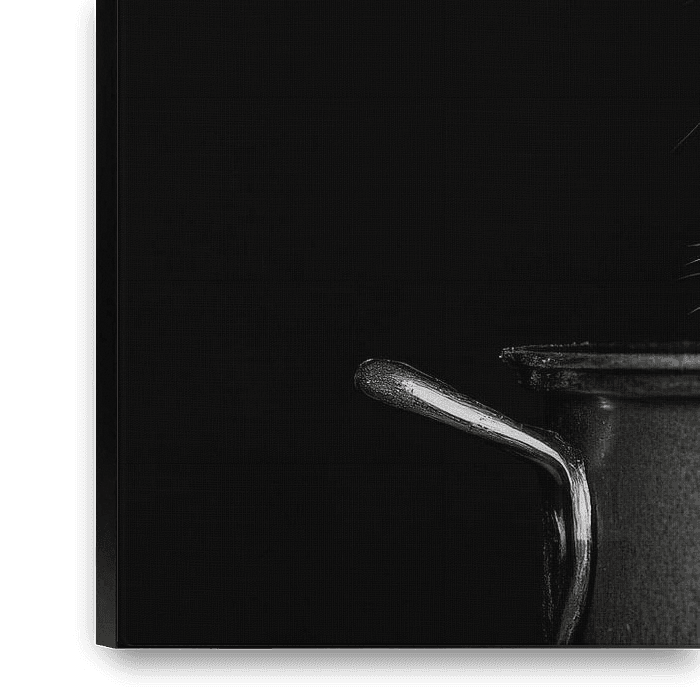 A lively rabbit sits in a shiny pot and looks straight into the camera. With its big, curious eyes and funny carrot look, it brings a touch of humour into the home. This charming picture is perfect for the kitchen or dining room, where it creates a cosy atmosphere.