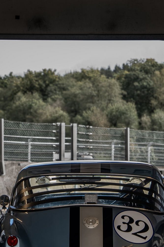 A TVR Grantura waiting in the pit box for the start of the 6-hour race at Spa-Francochamps.