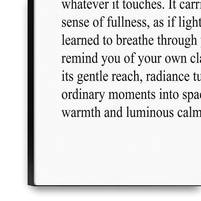 This minimalist typography poster depicts *Radiance* as a quiet inner glow that brings clarity and warmth to the room. The light-coloured design supports a calm, friendly atmosphere.