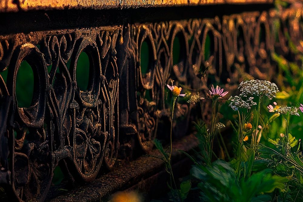 An ornately decorated banister, gently entwined with delicate flowers and lush greenery, radiates rustic charm. The warm lighting accents lend the scene an almost magical atmosphere. Perfect for the living room to create an inviting and nostalgic mood while bringing nature into the home.