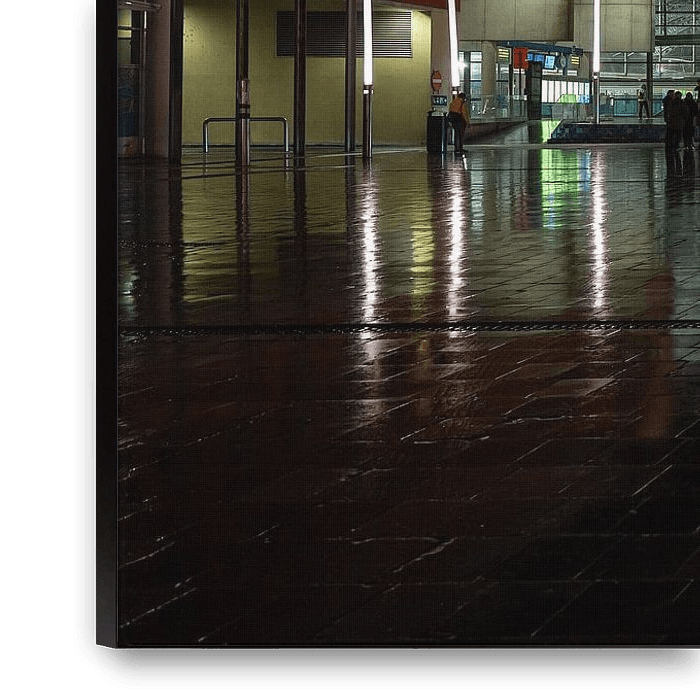 Buy the photo Rain light on the station square by Werner Lerooy on canvas, ArtFrame, poster and wallpaper, printed on demand in high quality.