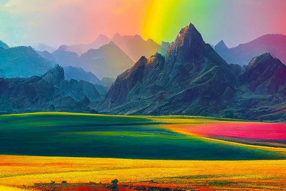 About "Rainbow over a Spring Landscape Painting Illustration"