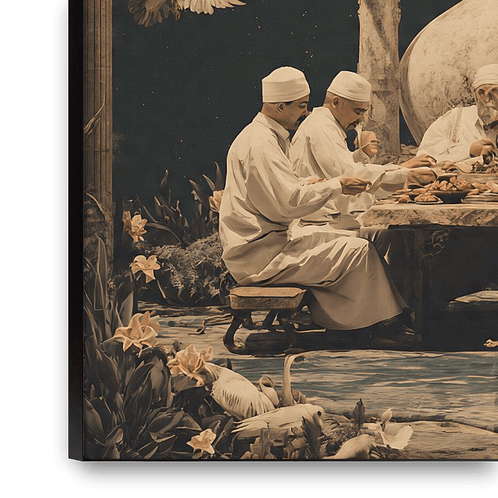 Experience the tranquil Ramadan moment captured in a vintage digital art style. This flat surreal illustration showcases lanterns, crescent moon, and serene prayer scenes. Perfect for festive, reflective, and spiritual artwork collections. Embrace detailed textures, soft lighting, and cinematic composition in this unique Ramadan-themed…