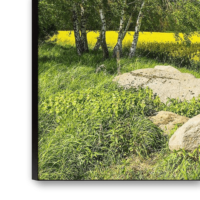 Buy this landscape artwork Rape field with trees and blue sky near Parkentin by Rico Ködder on canvas, ArtFrame, poster and wallpaper, printed on demand in high quality.