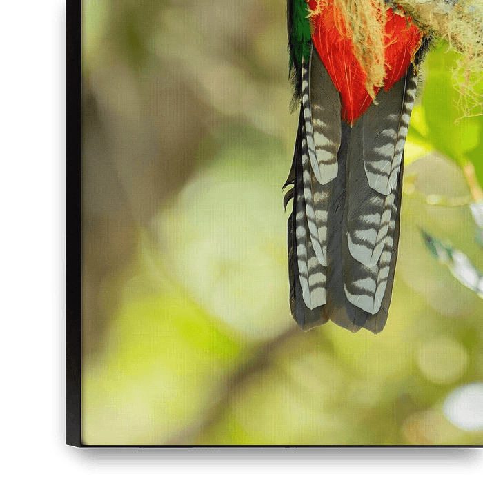 Buy this landscape artwork Rare bird: Quetzal - standing image by Isis van de Put on canvas, ArtFrame, poster and wallpaper, printed on demand in high quality.