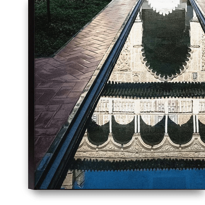 In the beautiful real Alcazar in Seville is a pleasure to walk through. As the reflection in the water shows.
