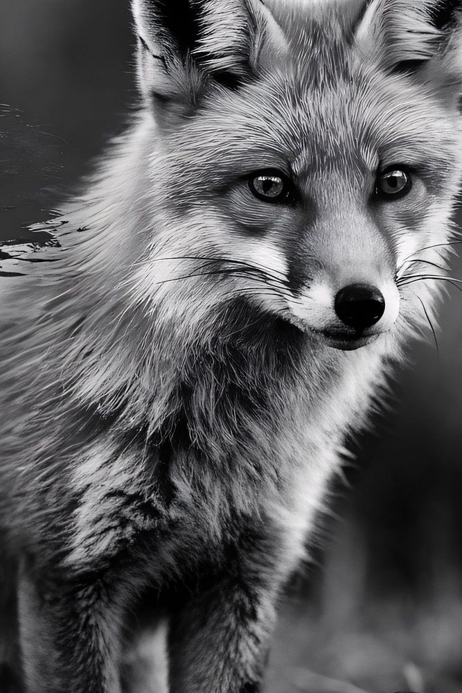 This unique black-and-white image captures attention with a beautifully realistic fox against a background of dynamic abstract brushstrokes. Perfect for lovers of natural elegance with a touch of modern design. The subtle texture and monochrome tones make this design timeless and stylish, ideal for adding a sophisticated atmosphere to any room. Perfect for a bedroom or office.