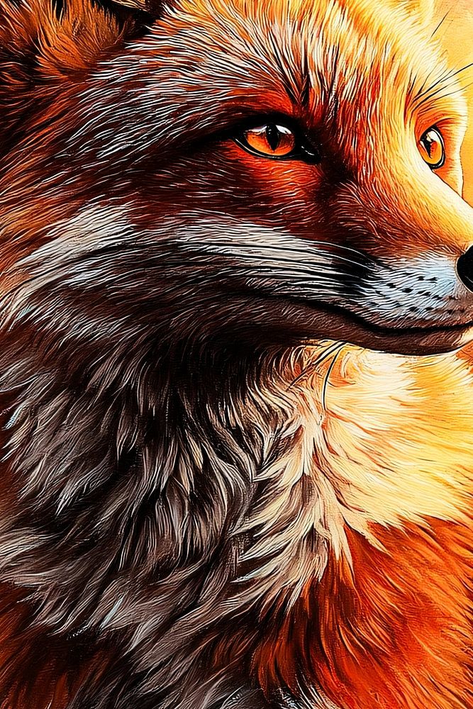 This impressive artwork brings the beauty of nature indoors with a majestic portrait of a fox. The rich orange hues, combined with subtle dark accents, give the painting a warm and vibrant feel. The details in the fox's fur and the beautiful glow of the backlight create a realistic and enchanting atmosphere. It is perfect for nature lovers and instantly brings a sense of calm and wonder to any room. Whether hanging in a living room, office or bedroom, this artwork is a timeless addition that adds both elegance and character to the interior. Let the fox fill your space with its magical appeal.