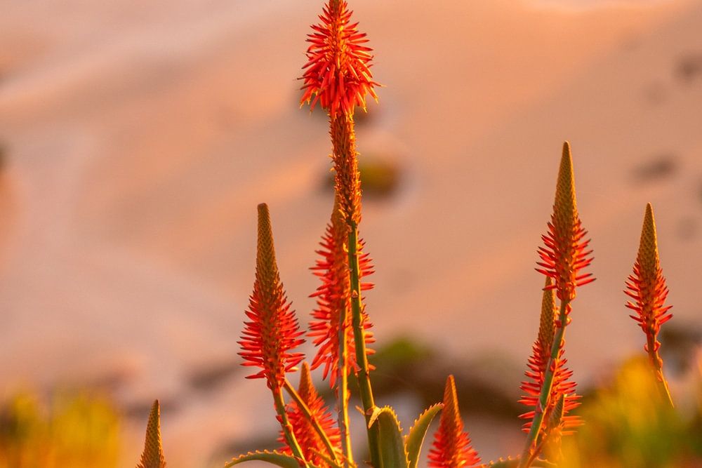 Red Aloe Vera Flower at Sunset by Leo Schindzielorz
