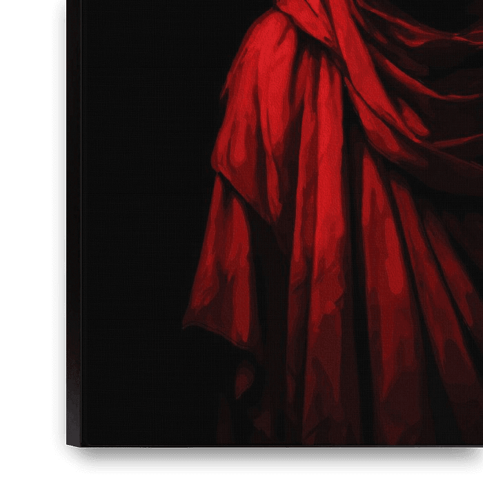 Buy this painting Red Hooded Figure – Dark Gothic Blood Moon Fantasy by Ramy Salah Hefny as a reproduction on canvas, ArtFrame, poster and wallpaper, printed on demand in high quality.
