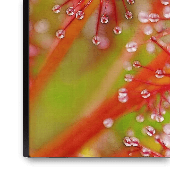 Buy this flower art Red Solar Dew (Sundew with drops) by Caroline Lichthart on canvas, ArtFrame, poster and wallpaper, printed on demand in high quality.