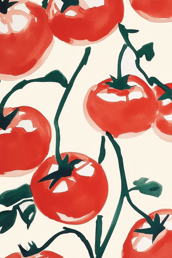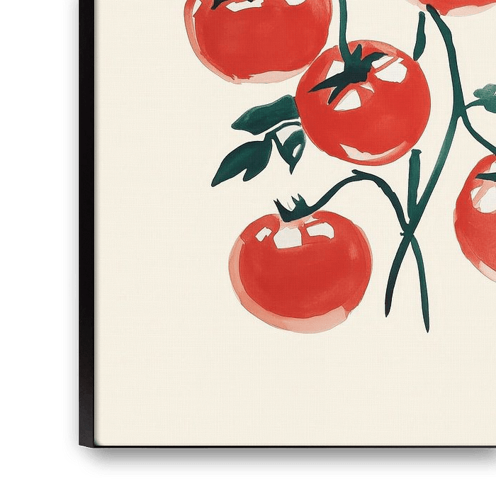 Buy this flower art Red Tomatoes on Vine by Melloi Art Prints on canvas, ArtFrame, poster and wallpaper, printed on demand in high quality.