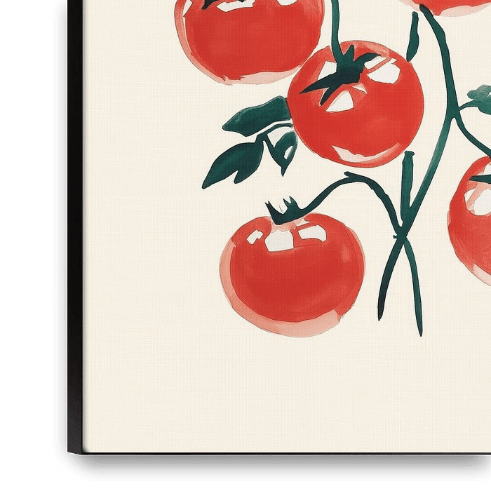 Buy this flower art Red Tomatoes on Vine by Melloi Art Prints on canvas, ArtFrame, poster and wallpaper, printed on demand in high quality.