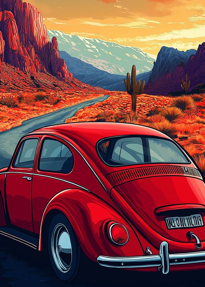 Buy this illustration Red Volkswagen by Lae on canvas, ArtFrame, poster and wallpaper, printed on demand in high quality.