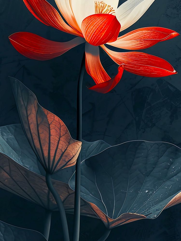 Buy this digital art artwork Red and White lotus flower by haroulita as a reproduction on canvas, ArtFrame, poster and wallpaper, printed on demand in high quality.
