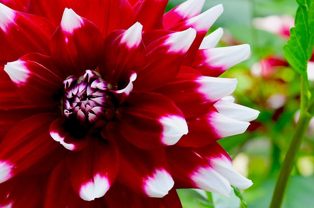 About ‘Red and white dahlia in green’ by Ivonne Fuhren-van de Kerkhof
