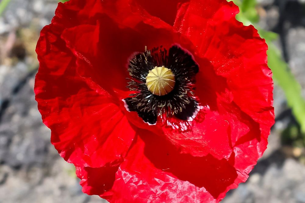 Buy this flower art Red corn poppy flower in front of stony ground by MPfoto71 on canvas, ArtFrame, poster and wallpaper, printed on demand in high quality.