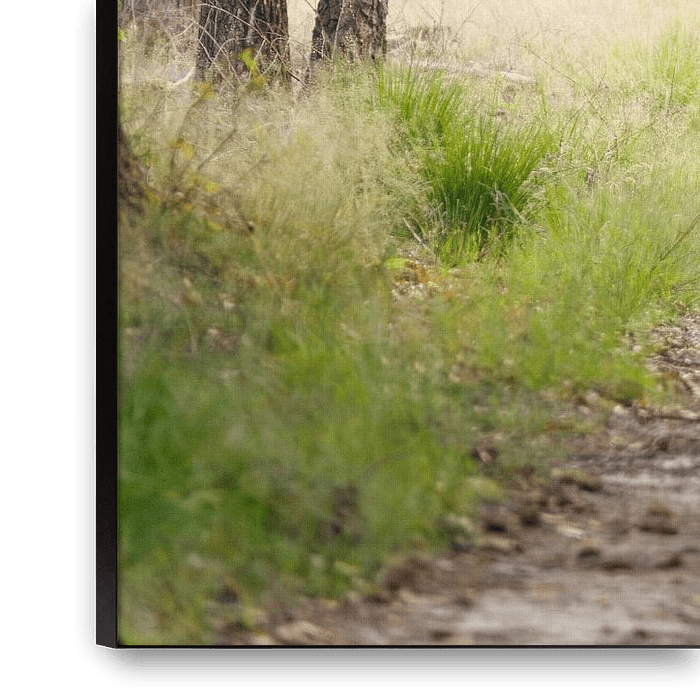 How awesome a Red Deer standing waist high on a sandy path in the Veluwe. This looks great on the wall in any room. You are drawn into the picture because the red deer is standing in the middle of the road.