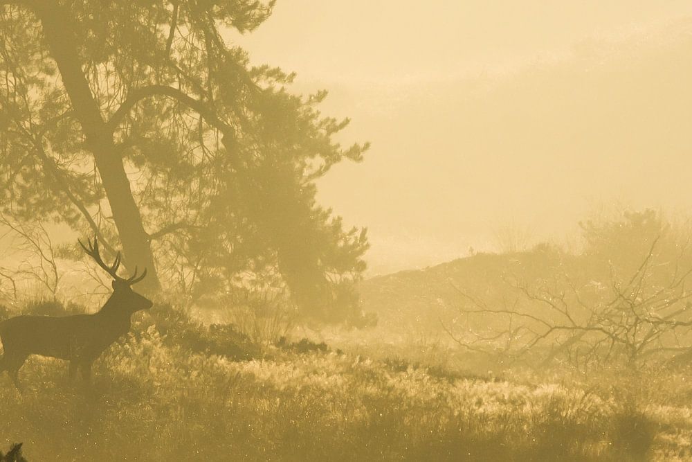 Red deer on the Elsberg (Veluwezoom) in the beautiful morning light of autumn.