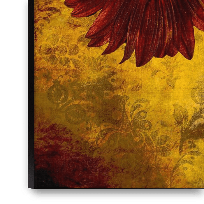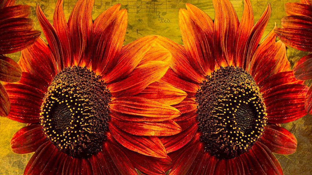 Buy this digital art artwork Red sunflowers - layered fine art with music and time by Saranda Foto Art as a reproduction on canvas, ArtFrame, poster and wallpaper, printed on demand in high quality.