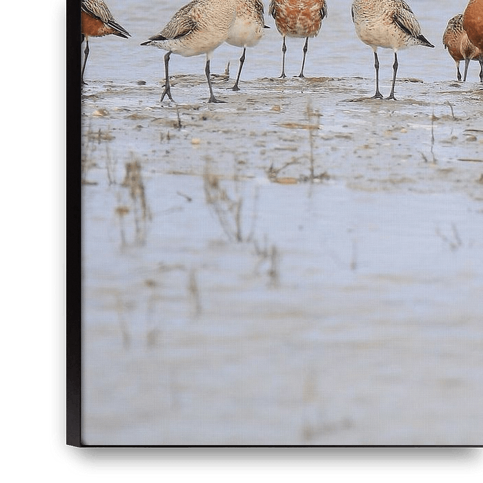 Red-tailed godwit, s on the mudflats, foraging on the mudflats before their journey to the far north begins.