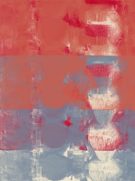 Buy this abstract artwork Red, terra and blue shapes. Colorful abstract art in vivid colors by Dina Dankers on canvas, ArtFrame, poster and wallpaper, printed on demand in high quality.