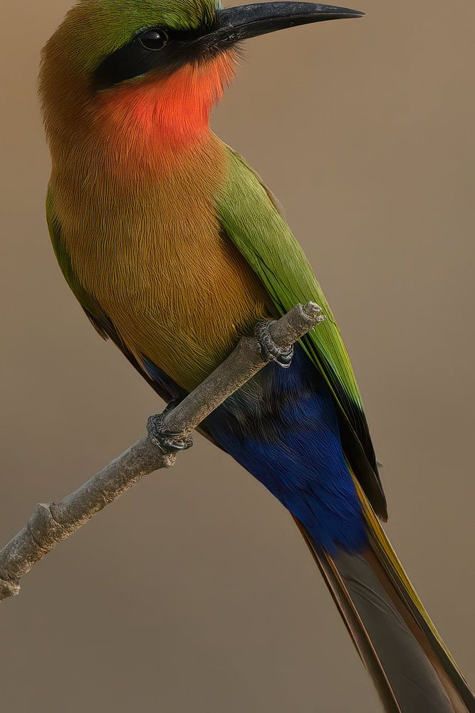 An extremely colourful but also graceful bird. The red throat gives it its name, but the blue butt is at least as pretty.