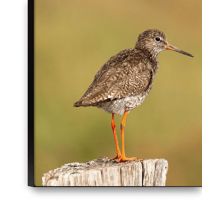 A Redshank (Tringa totanus) sits on a fence post at the edge of the salt marshes on Juist, East Frisian Islands, Germany.