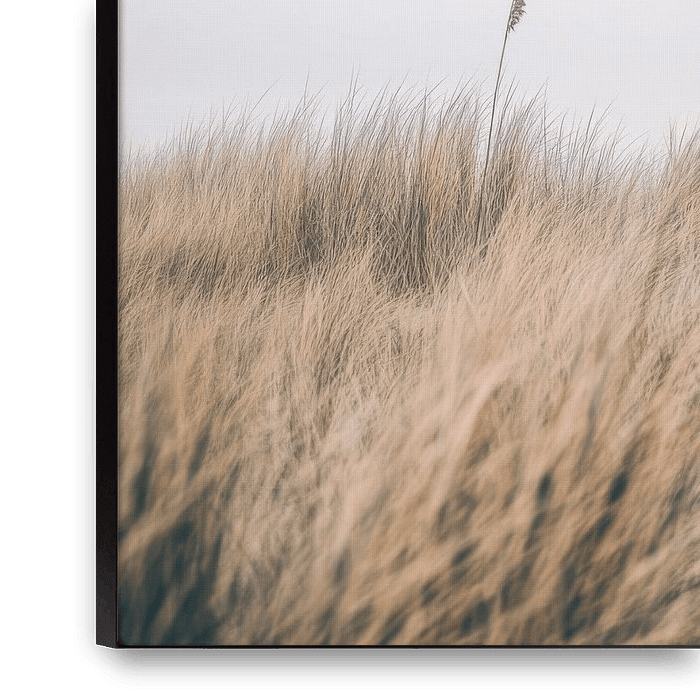 Gentle waves of golden grass dance in the wind, while delicate stalks reach curiously into the grey-bluish sky horizon. The mist lends the scene a melancholy stillness that makes the moment seem timeless. Here, nature and tranquillity merge into a harmonious image of contemplation and change.