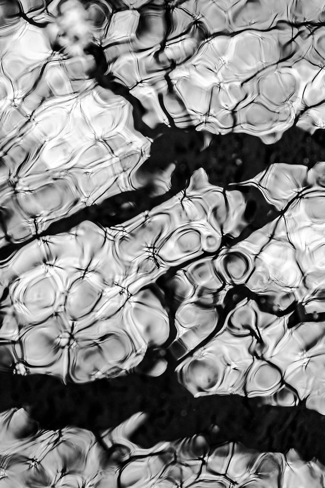 Reflection in Motion is an intriguing black-and-white artwork in which water and abstraction come together to create a powerful visual narrative. Photographed in a moment of stillness and movement simultaneously, this image shows how light, shapes and water surface find each other in an almost meditative dance. The abstract shapes emerge from reflections and ripples, giving the image a layered and mysterious atmosphere.
