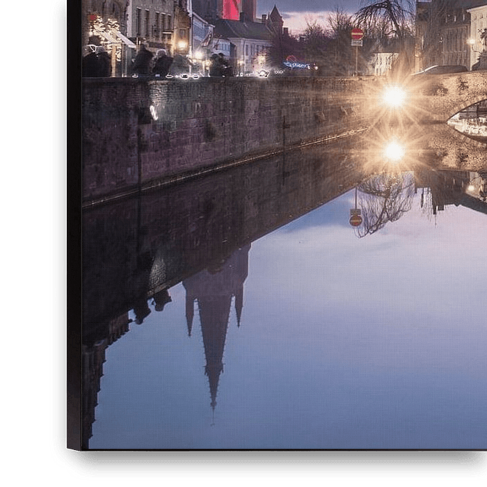 The day slowly fades behind the rooftops of Bruges. The water becomes still, the light softer, and the city seems to hold its breath for a moment. In this transition between day and night, a moment of tranquillity arises in which history and atmosphere merge. The reflections in the water double the facades and give the whole an almost…