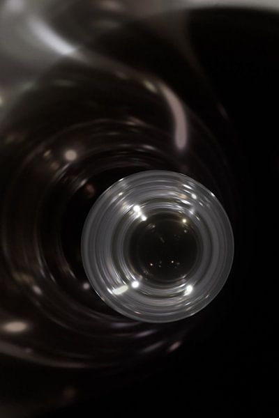 Abstract ray tracing image of a sphere within a sphere. Glass surfaces reflect each other.