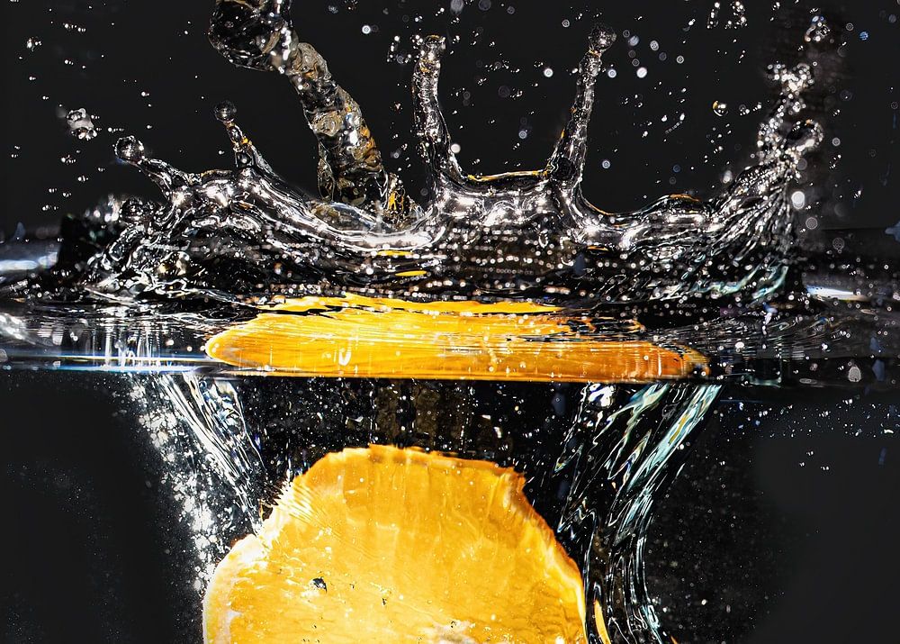 A slice of orange falls into the water. Doesn't that give you an appetite?