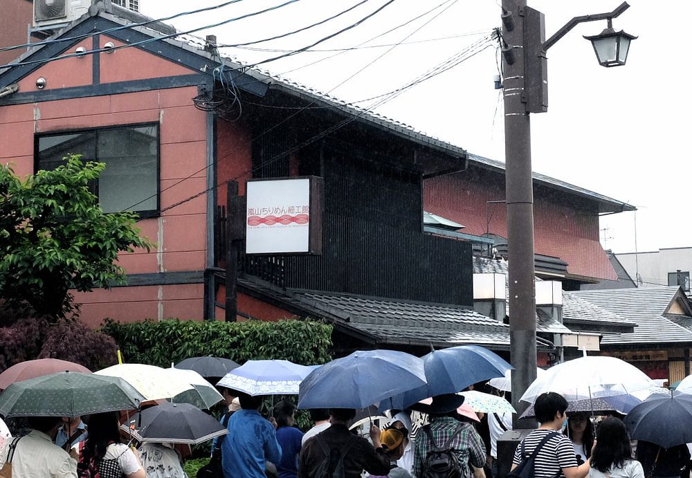 Japanners met paraplu tijdens een regenbui in Kyoto, Japan