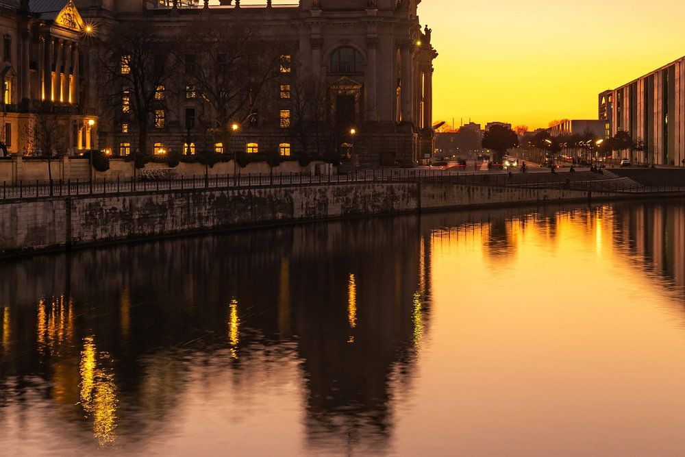 The German Bundestag-Reichstagsgebäude Berlin at sunset
