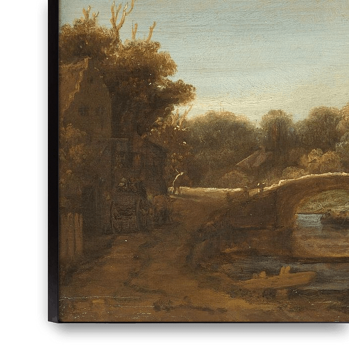 Buy Rembrandt van Rijn. Landscape with stone bridge as a reproduction on canvas, ArtFrame, poster and wallpaper, printed on demand in high quality.